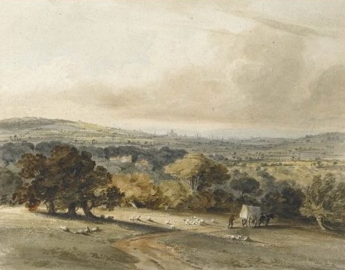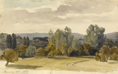 Amelia Long was the daughter of Sir Abraham Hume (1749-1838), the amateur artist and collector and friend of Reynolds. She married Charles Long (1761-1838), a great friend of William Pitt, who held a number of government positions and was created 1st Baron Farnborough in 1826. She was a pupil of Thomas Girtin and Henry Edridge in the 1790s. She and her husband bought Bromley Hill, Kent in 1801 and proceeded to enlarge the house to their own designs and improved the much-admired garden which by 1809 had two picturesque walks, each a mile long. As an artist, the Somerset House Gazette described her as having ‘a talent for painting and drawing that might fairly rank with the professors of the living art.’ She showed pictures at the Royal Academy as an Honorary Exhibitor between 1807 and 1822.